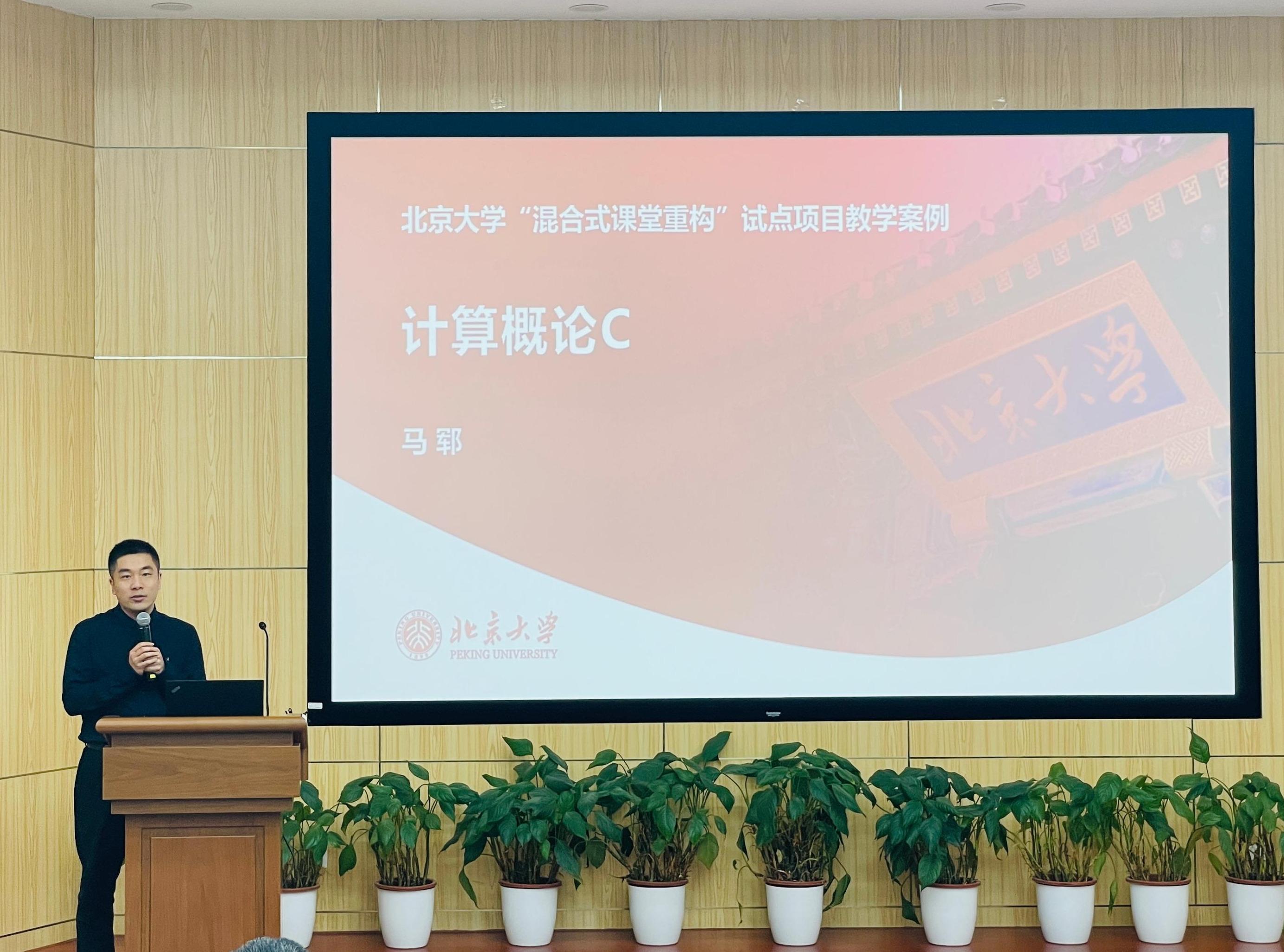 研讨会上,在信息科学技术学院开设“计算概论(C)”课程的马郓老师,从课程层面和参会教师交流“混合式课堂重构”项目阶段成果。