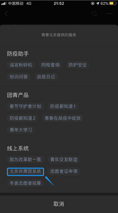 对于京内(有北京共青团系统账号的)同学: