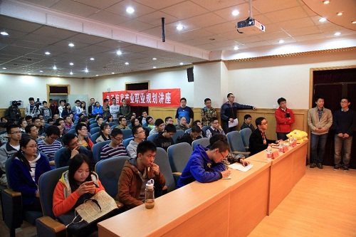 之后,胡运旺先生针对IC人开展了以“IC精英职场起步”为题的职业规划讲座,主要从IC产业链、IC最有价值岗位、工作选择原则、职业选择重点、融入职场素质、个人中长期职业发展几个方面展开评述,对大家所疑惑的究竟是从事软件编程还是硬件电路行业予以详细分析,重点强调了我国集成电路产业将会迎来一次高速的发展,在我国,微电子领域将大有可为。他建议即将步入职场的新人应该放平心态,从菜鸟做起,积极主动地学习,专注于某一领域,把专业做专做精。最后,胡运旺先生与大家进行了近一个半小时的互动,期间辛辣点评校招企业、职业岗位,对同学们所关心的职业岗位选择给出自己的建议,赢得了现场同学的热烈掌声与好评。