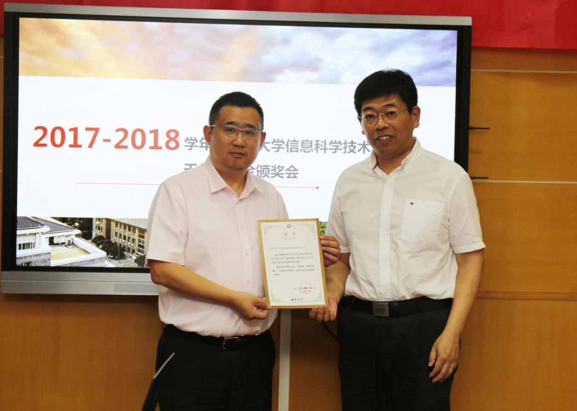 6月5日上午,北京大学信息科学技术学院天创奖学金颁奖大会在北京大学理科二号楼2135会议室召开,北京天创盛世数码科技有限公司董事长周洲、北京大学信息科学技术学院党委书记魏中鹏、北京大学教育基金会副秘书长胡俊出席了颁奖会,八名荣获我院2017-2018学年度天创奖学金的同学也参加了会议。会议由北京大学信息科学技术学院学生工作办公室专职辅导员贺凌主持。