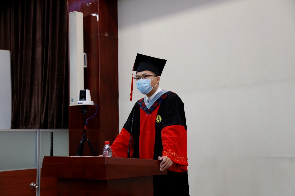 微纳电子学系2015级博士生郑峰屹同学作为优秀毕业生代表发言。他真切地回顾了自己在燕园的九载时光,表达了对过往校园生活的眷恋和不舍;同时讲述了北大人的使命感、骄傲和责任,代代北大青年和这座巍巍学府一同成长,作为北大人,无论从事何种职业,无论身在何地,都应该牢记北大的文化和传统,坚守北大的精神和信念;作为信科人,必然将会参与到智能时代的变革当中去,肩负前所未有的机遇与挑战。他最后以杨芙清老师的话语激励同学们:“只要国家需要,我就去做。”