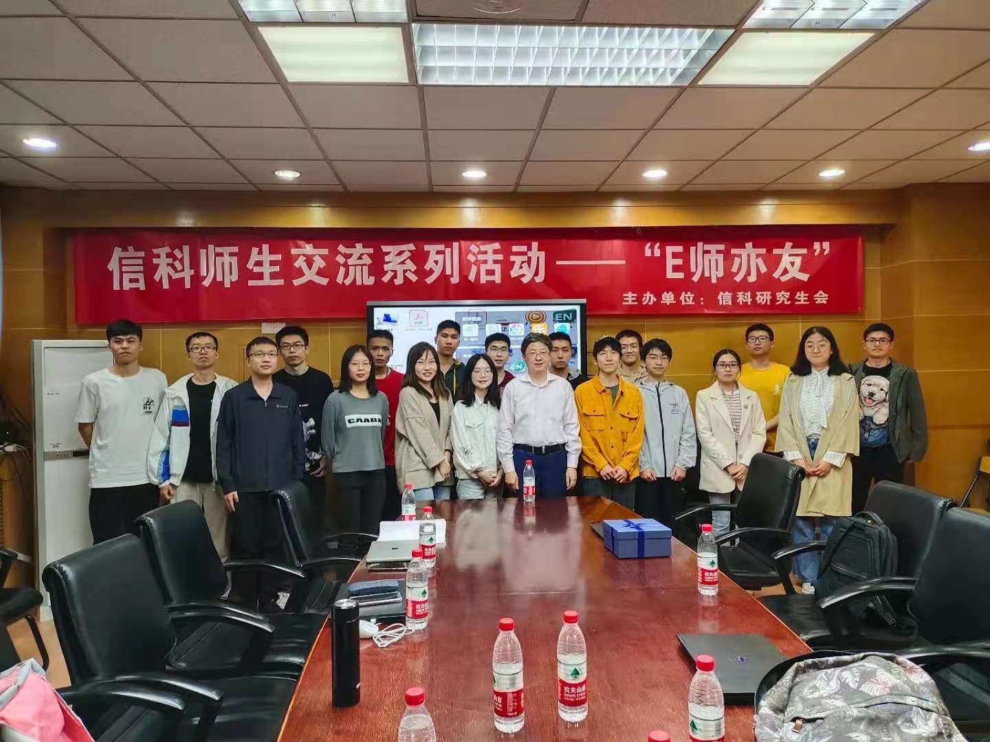 美好的时光总是短暂的。在师生们的亲切交流中,座谈会不知不觉接近了尾声。最后,全体同学一同与胡振江教授合影留念。座谈会结束后,依然有不少同学继续与胡老师深入探讨问题。通过本次活动,进一步拉近了师生之间的距离,胡老师了解了同学们的所思所想,同学们也消除了心中的种种困惑,本次“E师亦友”师生座谈会取得了圆满成功。