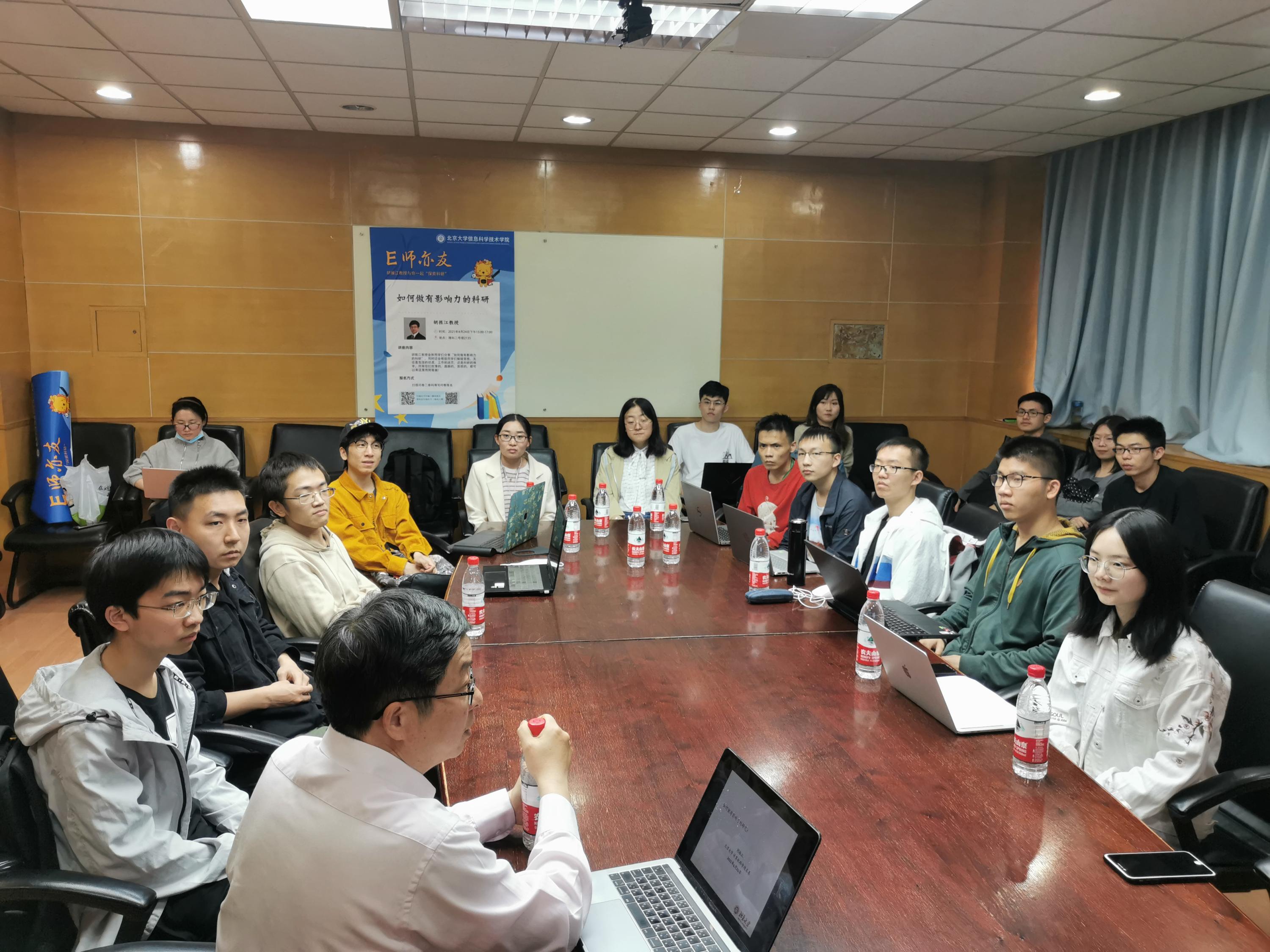 4月24日下午3:00,由信息科学技术学院研究生会主办的“E师亦友——如何做有影响力的研究”师生座谈会在理科二号楼2135教室成功举行。本次座谈会邀请到信息科学技术学院计算机系主任胡振江教授作为嘉宾,与来自学院不同专业和年级博士生、硕士生以及本科生分享科研和人生经验。同学们热情高涨,积极提问,胡振江老师为同学们答疑解惑,以亲身经历言传身教。