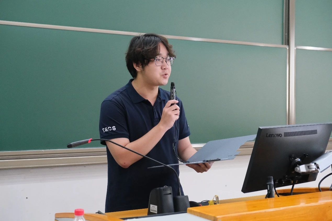 信息科学技术学院2022级宋海博同学作为在校生代表发言。首先,他向初入燕园、即将踏上军训征程的新同学们,致以了欢迎和祝福。他分享了自己参加军训的宝贵经历,军训使他学会了在困难面前不屈不挠,在挑战中勇于担当。最后,他号召2024级同学们借助军训的宝贵契机,积极向党组织靠拢。