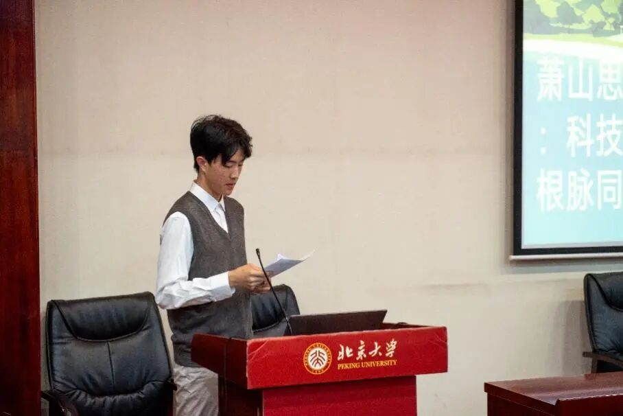 夏中豪同学从红色历史、文化底蕴、产业转型三个维度展开分享11班赴河北邯郸开展社会实践的经历。通过参观晋冀鲁豫边区展馆和红色电影博物馆,同学们感受到红色精神的时代价值;在邺城博物馆和邯郸博物馆,体会到科技赋能文化传承的创新路径;走访河北制建机械和北大邯郸创新研究院,见证了传统制造业的智能化转型。这些参访让同学们认识到,红色基因是精神指引,文化自信是力量源泉,数字创新是时代使命,进一步坚定了将个人发展融入国家战略的决心。