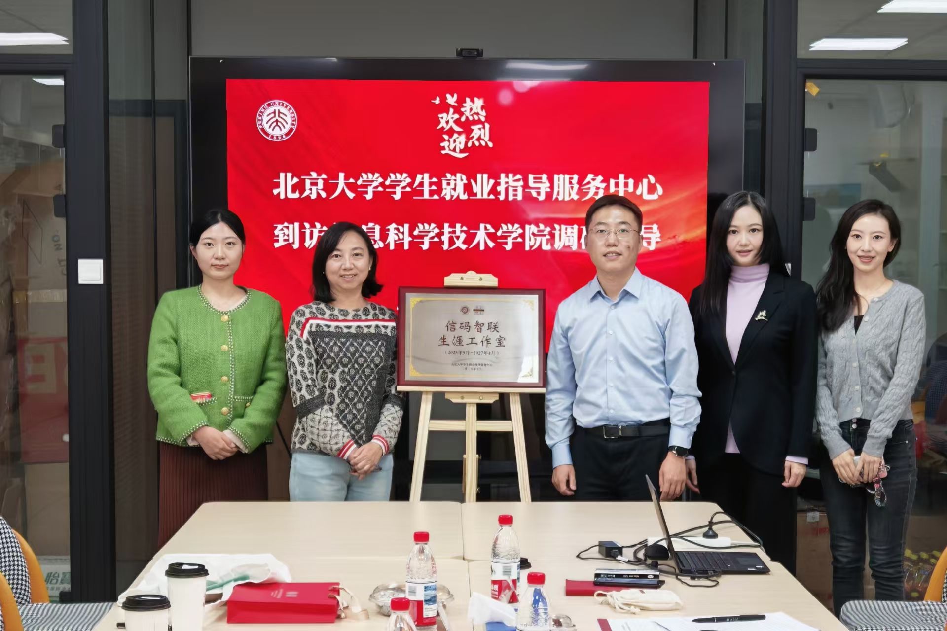 20251016日,北京大学学生就业指导服务中心副主任李妍、职业发展教研室主管邹霞一行到访信息科学技术学院开展专题调研,双方在理科一号楼1127学生创新活动空间,围绕“信码智联生涯工作室”运行情况开展座谈。信息科学技术学院党委副书记贾方健、学工办主任李子奇及学工干部付晓倩参加活动。