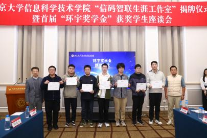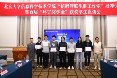 金秋时节,硕果盈枝。10月24日,为全面落实习近平总书记关于促进高质量充分就业的重要讲话精神,响应北京大学“科技创新年”部署,信息科学技术学院“信码智联生涯工作室”揭牌仪式暨首届“环宇奖学金”获奖学生座谈会,在北大百周年纪念讲堂盛大举行。上海明汯投资管理有限公司合伙人、上海数启寰宇人工智能科技有限公司创始人解环宇校友,北京大学学生就业指导服务中心主任樊志,信息科学技术学院院长侯士敏、党委副书记贾方健等嘉宾莅临现场,与首届“环宇奖学金”获奖学生及师生代表齐聚一堂,共同见证这两个关乎信科学子成长的重要时刻。活动由信科学院学工办主任、院友会秘书长李子奇主持。
