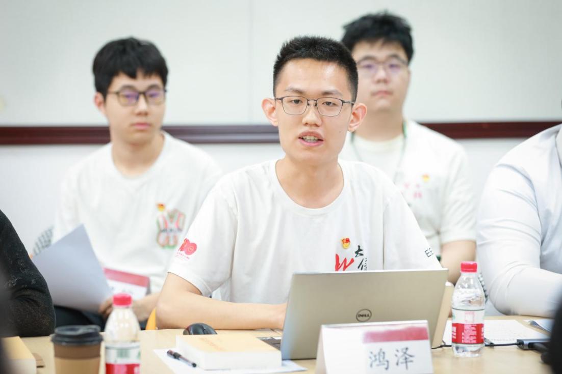 学生第五党支部书记、2019级本科生李鸿泽从支部概况、亮点工作、主题教育等方面汇报了支部情况。他表示,党支部将继续积极响应学院党委开展主题教育工作要求,通过组织理论学习分享会、开展主题教育交流会,持续学习党的二十大报告和《习近平著作选读》重要思想等,将主题教育工作落到实处。