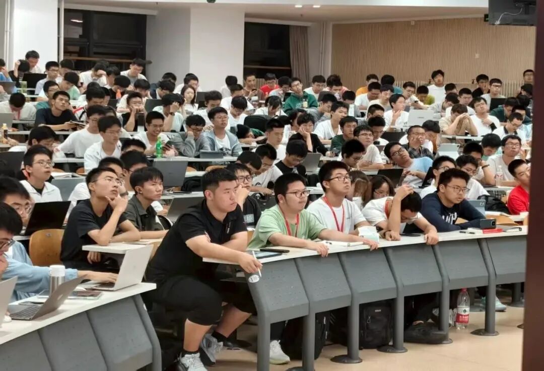 整场分享兼具科学性和通俗性,围绕存算一体技术的主题,一方面,王绍迪引用详尽的数据,展开了严谨的描述,借助编程、调试等具体情境,简要地介绍了向量乘矩阵的计算逻辑,科学而通俗地讲解了大模型计算需要巨量算力的根本原因,使同学们理解深入,印象深刻。另一方面,王绍迪通过运用具体事例,尽可能使讲座通俗易懂。如列举了机器人举起矿泉水的具体情境,描述了让机器人“感知”矿泉水瓶的重力,“体会”压力和摩擦力的过程中面临的诸多挑战,从而介绍了机器人智能开发中面临的困难,具体可感。