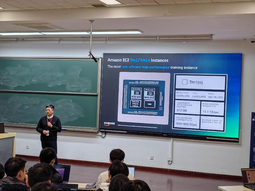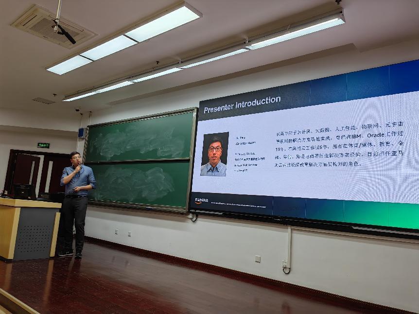 在讲座后的提问环节中,亚马逊云科技的朱耀飞、乔敬霄、李亦钊等三位老师积极引导学生提问,并细致的解答了同学们提出的问题,现场交流气氛活跃。
