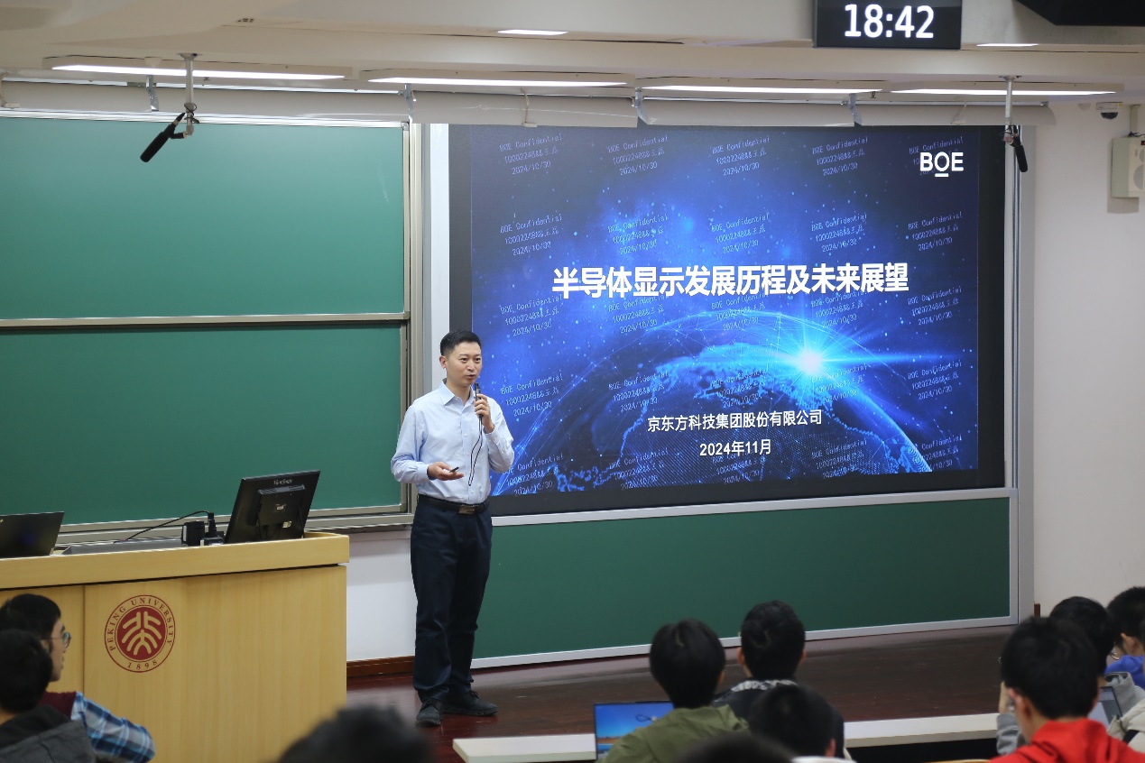 2024年11月8日晚,信息科学技术学院第三十期“知存讲座”暨信息科学前沿与产业创新课程在理科教学楼107教室顺利举办。京东方科技集团股份有限公司技术战略与协创中心副院长王磊先生受邀进行了以“半导体显示发展历程及未来展望”为主题的报告。信息科学技术学院副院长王润声老师主持了本次讲座。