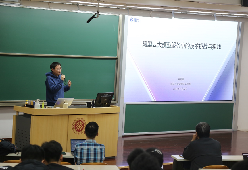 2024年11月22日晚,信息科学技术学院第三十二期“知存讲座”暨信息科学前沿与产业创新课程在理科教学楼107教室顺利举办。阿里云智能通义实验室高级技术专家姜碧野博士受邀进行了以“阿里云大模型服务中的技术挑战与实践”为主题的报告。信息科学技术学院副院长王润声老师主持了本次讲座。
