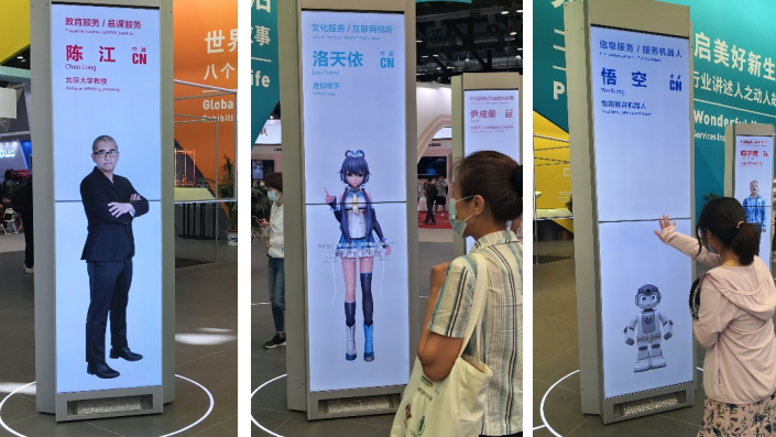 2020年首届北京服贸节上的互动行业人物形象,左一为陈江
