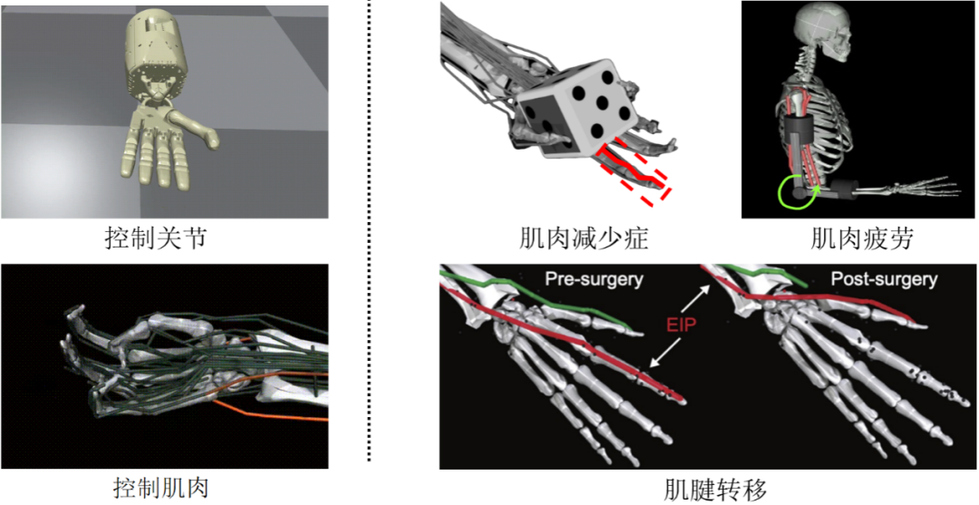 左侧:不同灵巧手控制方式;右侧:MyoChallenge中的特殊灵巧手模型