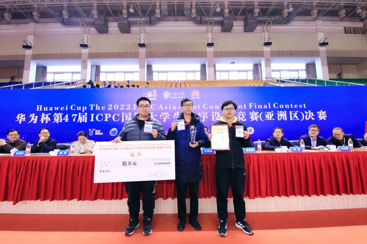 华为杯第47届国际大学生程序设计竞赛ICPCInternational Collegiate Programming Contest)(亚洲区)决赛,于324-26日在上海大学宝山校区举行。经过激烈的角逐,由北大信息科学技术学院王展鹏、蒋凌宇和北大数学科学学院罗煜翔三位本科生组成的队伍荣获冠军,这也是三位同学在ICPC竞赛中的第二次夺冠!
