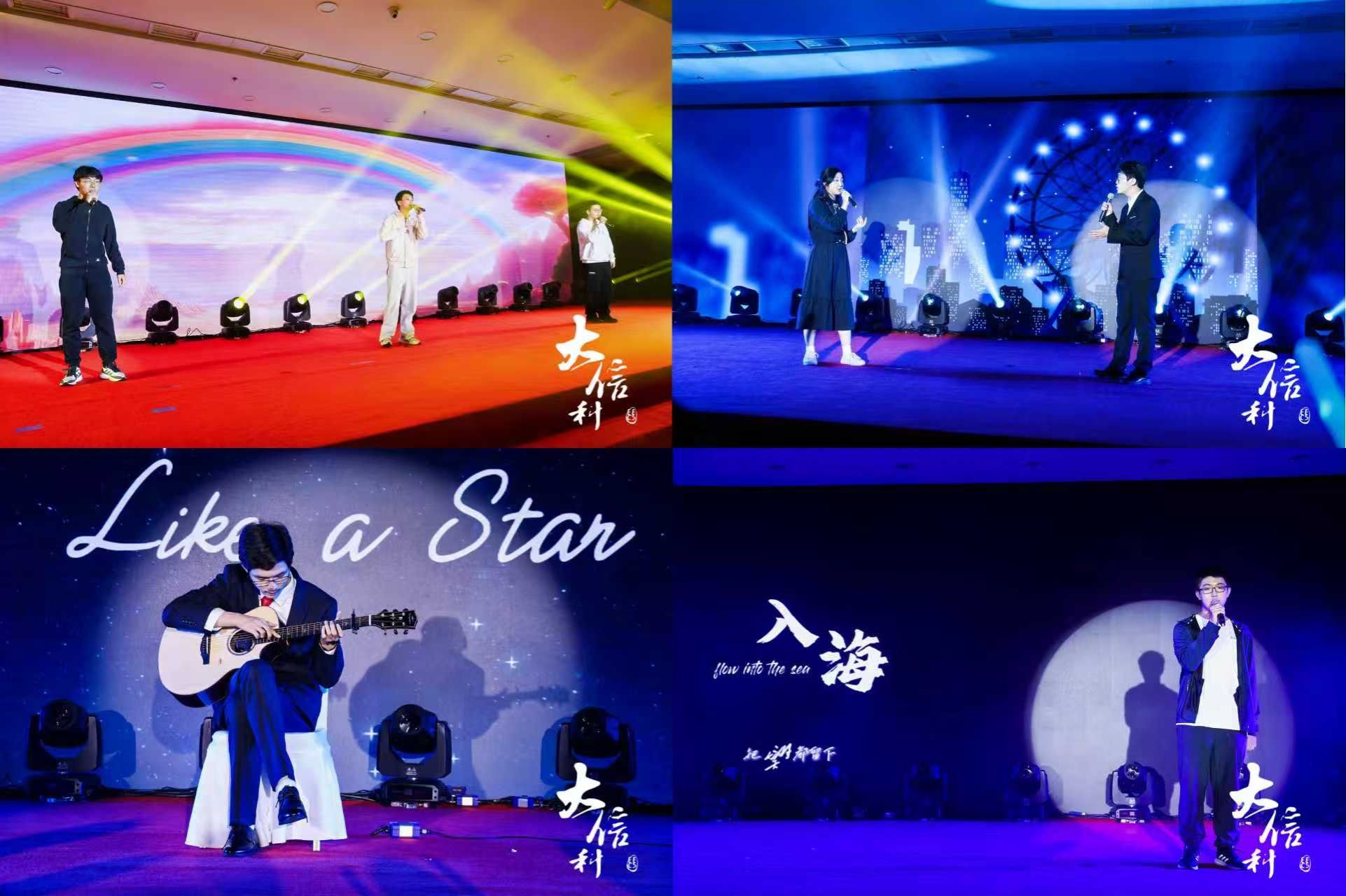 第三篇章“长歌竞夜 诗酒趁年”进一步提升了晚会的情感深度:杨岩淇、李佳旺、李昱霖演唱的歌曲《找自己》点燃了整个会场,让观众忘却所有烦恼,跟随轻快的节奏一起摇摆;陈主寰、李乐萱带来了歌曲《Need You Now》,二人深情的演唱让我们不禁心生触动,珍惜每一次的邂逅与陪伴;杨子涵同学带来的吉他独奏《like a star》,更是让我们跟随指尖的律动,聆听到仿佛流星划过天空的声音;丁培鑫同学则为我们演唱了《入海》,他以青春的嗓音带给我们前进的力量,以动听的音符引发了我们对未来的向往。