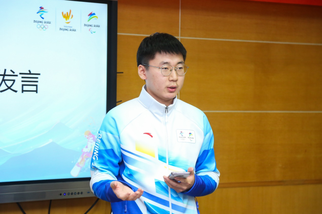 2020级本科生徐致远介绍了测试赛期间他在赛事服务领域的工作与体悟。测试赛是一场世界轮椅冰壶锦标赛,更是为冬奥顺利举行、对冰立方场馆运行的一次预演,是对场馆运行与服务保障的一次重要考验。他对即将到来的正赛十分憧憬,希望能继续认真踏实地完成志愿服务工作,为冬奥的完美呈现而努力。
