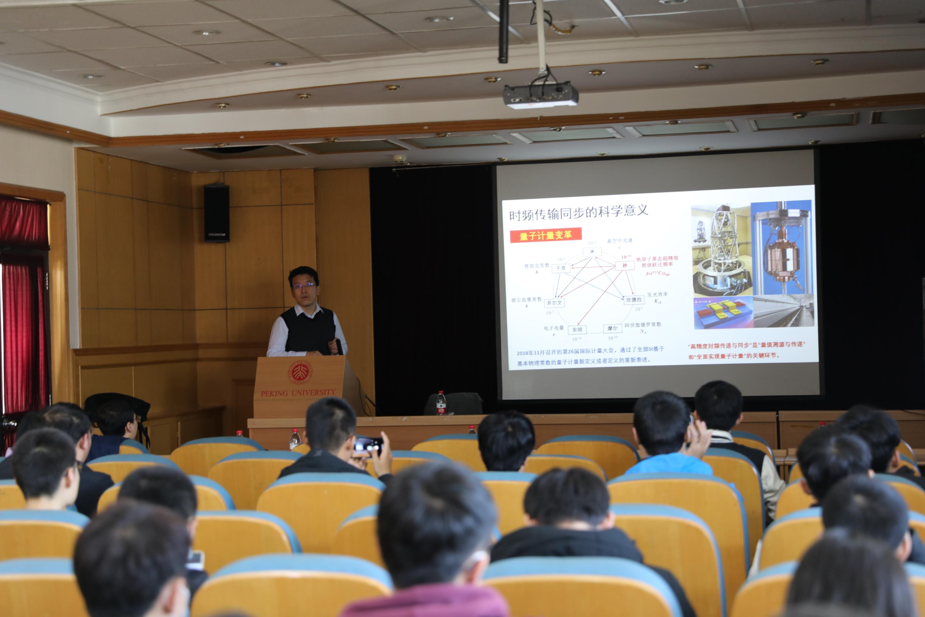 2021年11月12日下午,由北京大学电子学系主办的电子学系前沿学术论坛第十八期在北京大学理科二号楼2736报告厅顺利举行。本期论坛邀请到清华大学精仪系仪器所副所长、光子测控技术教育部重点实验室副主任王波长聘副教授做主题为“光纤时频同步及应用”的学术报告。讲座由电子学系副系主任王延辉主持,约50名师生聆听了本次学术报告。