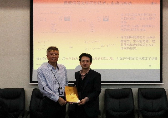 活动最后,信息科学技术学院副院长、电子学系党总支书记侯士敏教授为郑小平教授颁发本次活动的纪念证书,并合照留念。至此,本场精彩的讲座在热烈的掌声中圆满结束。