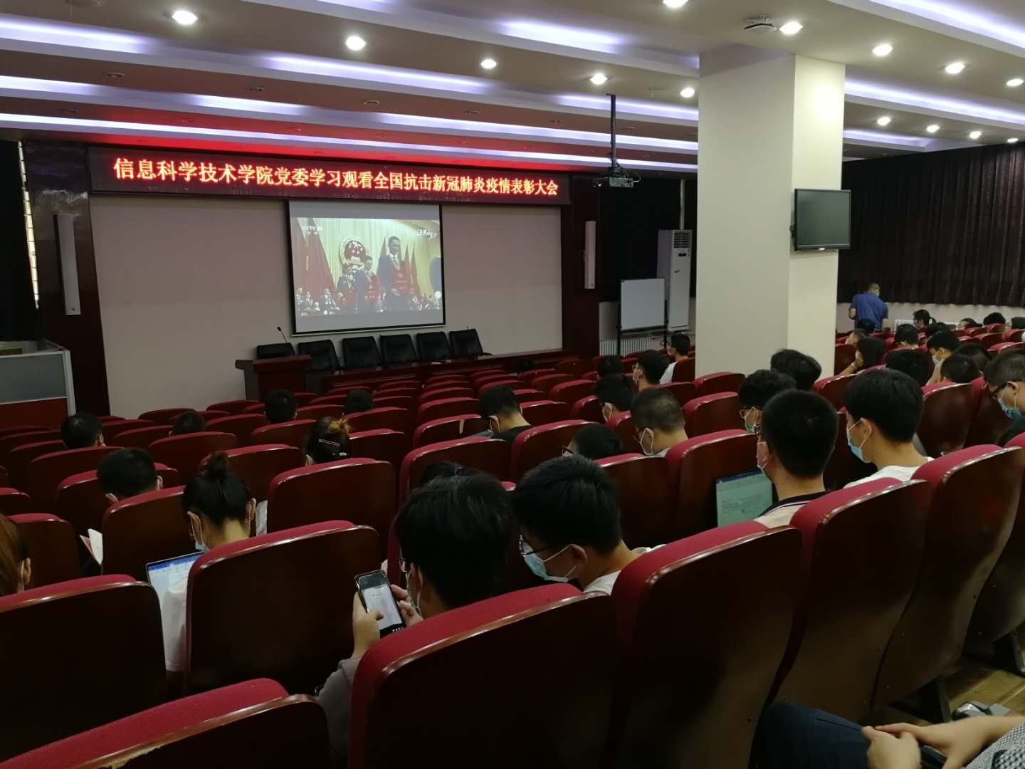 9月8日上午,全国抗击新冠肺炎疫情表彰大会在北京人民大会堂隆重举行。在学院党委的统一部署下,电子学系教工第二支部组织支部党员观看了这次大会。支部根据每位党员的便利情况,采用集中统一观看和自行观看两种方式。除了3位党员因出差或者有会议安排表示之后回看表彰大会外,支部其他党员都采取以上两种方式观看表彰大会的直播。大会观看过程中,支部党员积极参与讨论交流,纷纷在支部微信群分享自己的观看情况和观看心得。