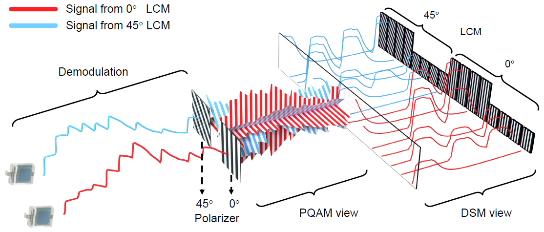 本文提出了两种新颖的调制技术,即延迟叠加调制(DSM)和偏振正交幅度调制(PQAM),通过对液晶阵列进行细粒度分布式偏振操控,分别实现在非线性信道下的时域高阶调制以及基于偏振光的双倍信道拓展和免位姿对齐。在软硬件定制原型系统以及仿真环境中分别达到32倍和128倍的互联速率提升,突破了液晶调制器开关频率低以及响应非线性的局限,使该技术可广泛应用在室内物联网以及车联网感知等应用场景。