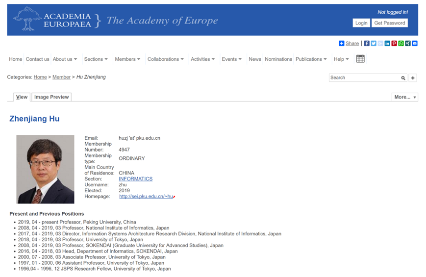 2019年6月27日,欧洲科学院(Academia Europaea)发布了2019年度院士增选结果,北京大学信息科学技术学院计算机科学技术系胡振江教授、张大庆教授当选为外籍院士。