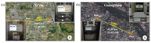西安(a)、广州(b)两地商用光纤CV-QKD外场试验