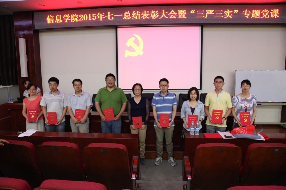 6月19日下午,信息科学技术学院七一表彰大会暨“三严三实”专题党课在理科二号楼2129会议室隆重举行。学院党政领导、各支部负责人、党员代表、入党积极分子参加了大会。大会由信息科学技术学院党委副书记冯梅萍主持。