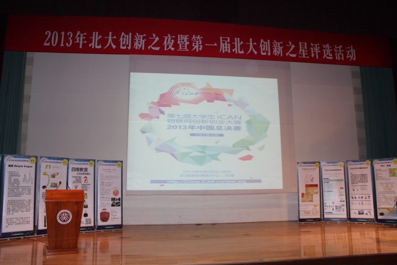 10月25日晚,2013年北大创新之夜暨第一届北大创新之星评选活动在北京大学百年讲堂多功能厅举行。该活动是由学校公选课“创新工程实践”课程组发起的,并和北大团委、信息科学技术学院、文科计算机课程组共同举行的,以进一步引导与启迪大学生用于开展创新实践,发现和培养有志于创新创业的青年人,促进产学研的合作。朝阳区科协杨绍磊主席等科协领导,以及北大科技研发部副部长郭蕾、北大信息科学技术学院副院长李文新、北大元培学院院长许崇任,山东大学等兄弟院校代表,人大附中等中学代表,以及方正电子市场部总经理文力女士,索尼中国前副总裁迟泽准先生,松博科技公司马劲松总经理,广微积电企业代表雷述宇技术总监等企业家代表参加了此次活动。