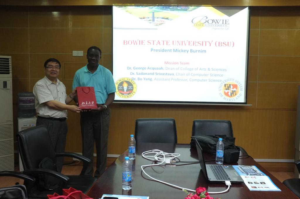 6月23日上午,美国鲍威州立大学艺术与科学学院院长George Acquaah教授、计算机科学系主任Sadanand Srivastava前来访问,随行的还有助理教授Bo Yang。