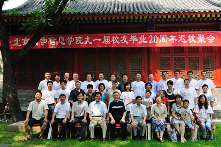 随后,返校院友依次发言,从身体、事业、家庭几个方面介绍了自己的现状,并对母校表达了最真挚的祝福。邹欣和赵东岩院友当场提议设立87级计算机系基金,为母校的建设发展贡献自己的一份力量,此举在掌声中获得一致通过。会后,全体师生在校园合影留念。