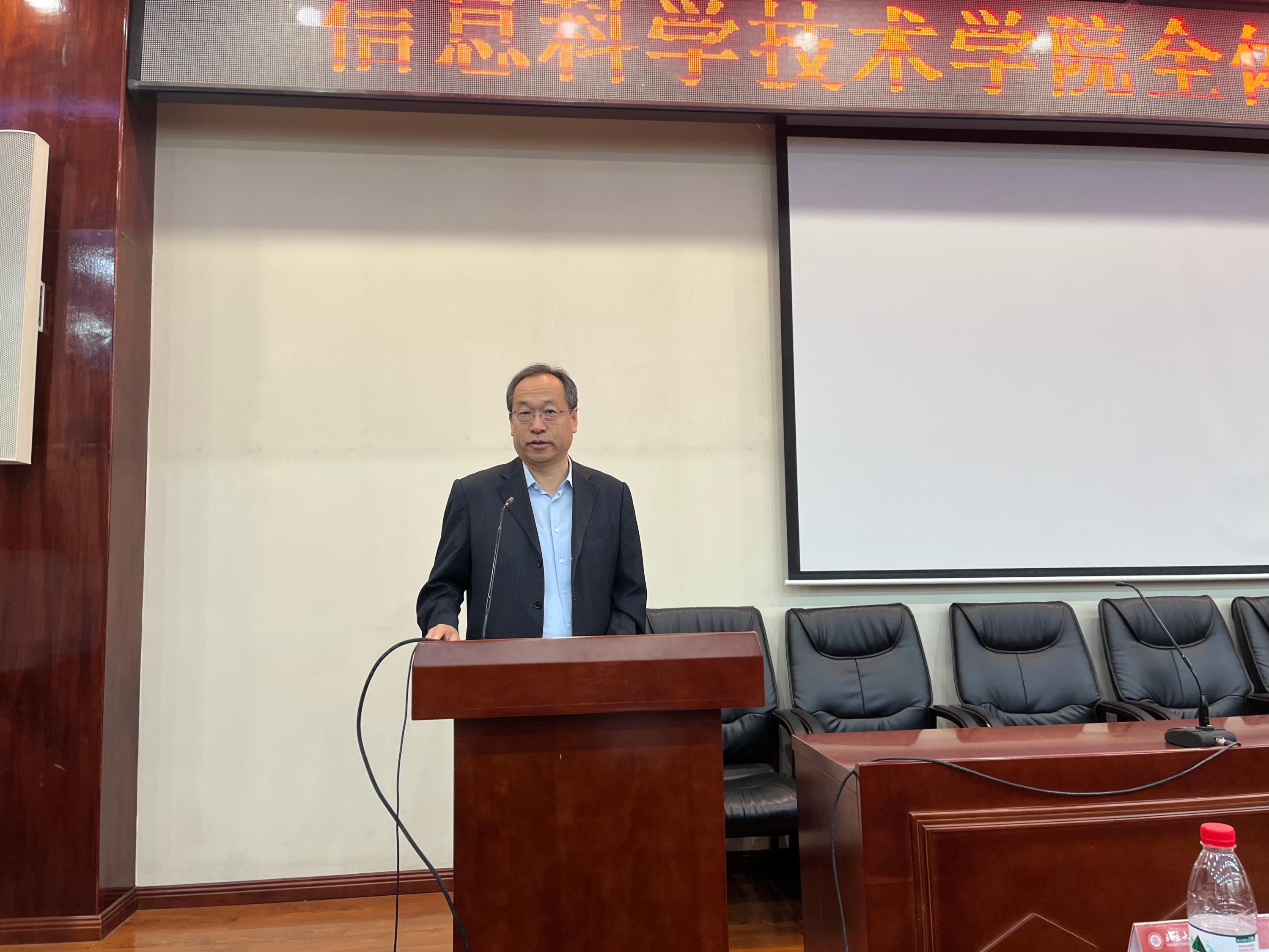 会议最后,张锦代表学校党委,对信息科学技术学院接下来的工作提出了明确要求和殷切期望。他表示,学院一是要切实履行党委政治责任,确保党的路线方针政策及学校党委决定贯彻执行有力,不断推动全面从严治党向基层延伸,切实把党的领导贯穿教书育人全过程。二是要进一步把握学校成立本科生学院的重要意义,努力提高信息学科人才培养质量。本科生学院要继续坚持立德树人根本任务,坚持“以本为本”,把本科教育放在人才培养的核心地位,放在教育教学的基础地位,放在新时代教育发展的前沿地位。三是要认真贯彻落实学校第十四次党代会精神,以更加优异的成绩迎接党的二十大胜利召开。学院要认真学习贯彻学校第十四次党代会精神,落实学校党代会的各项部署,同时,学院党委要全力做好迎接学习宣传贯彻党的二十大的各项准备工作,积极营造安全、和谐的教学科研工作氛围,用实际行动向党的二十大献礼。