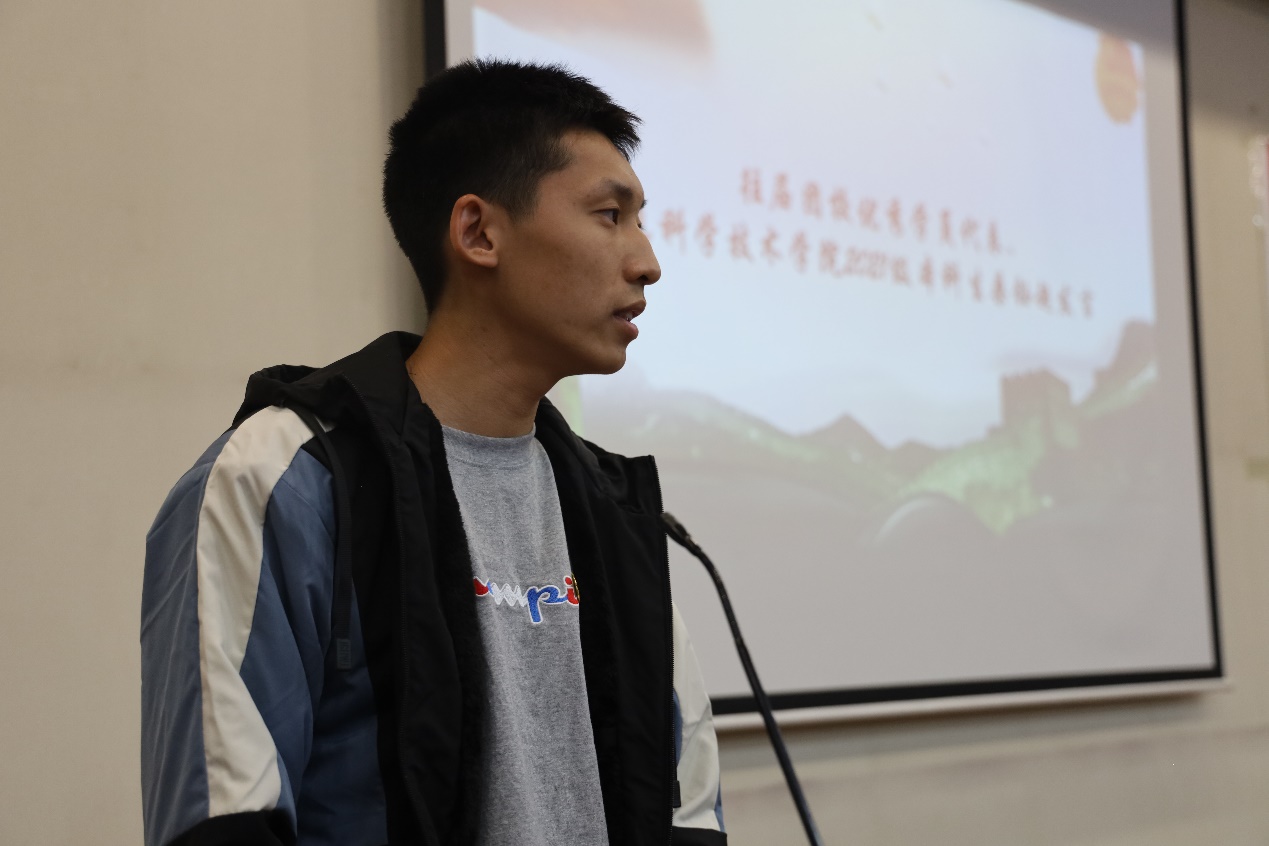 往届团校优秀学员代表、信息科学技术学院2021级本科生桑钰超发言