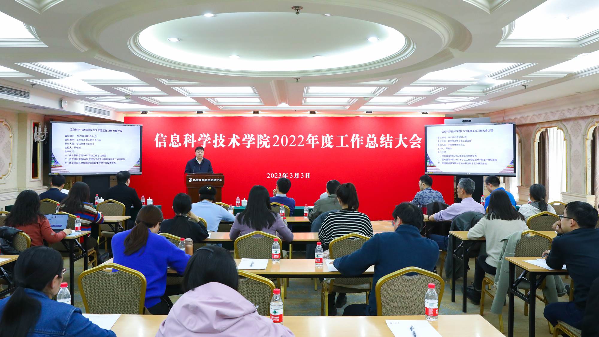 凛冬散尽,暖春已至。为全面总结回顾学院2022年工作成绩,统筹部署新一年的工作任务,2023年3月3日下午,信息科学技术学院在北京大学英杰交流中心第二会议室召开2022年度工作总结大会。学院党政班子全体成员、教学所及行政等全体教职员工共40余人参加本次会议,会议由学院党委书记严敏杰主持。
