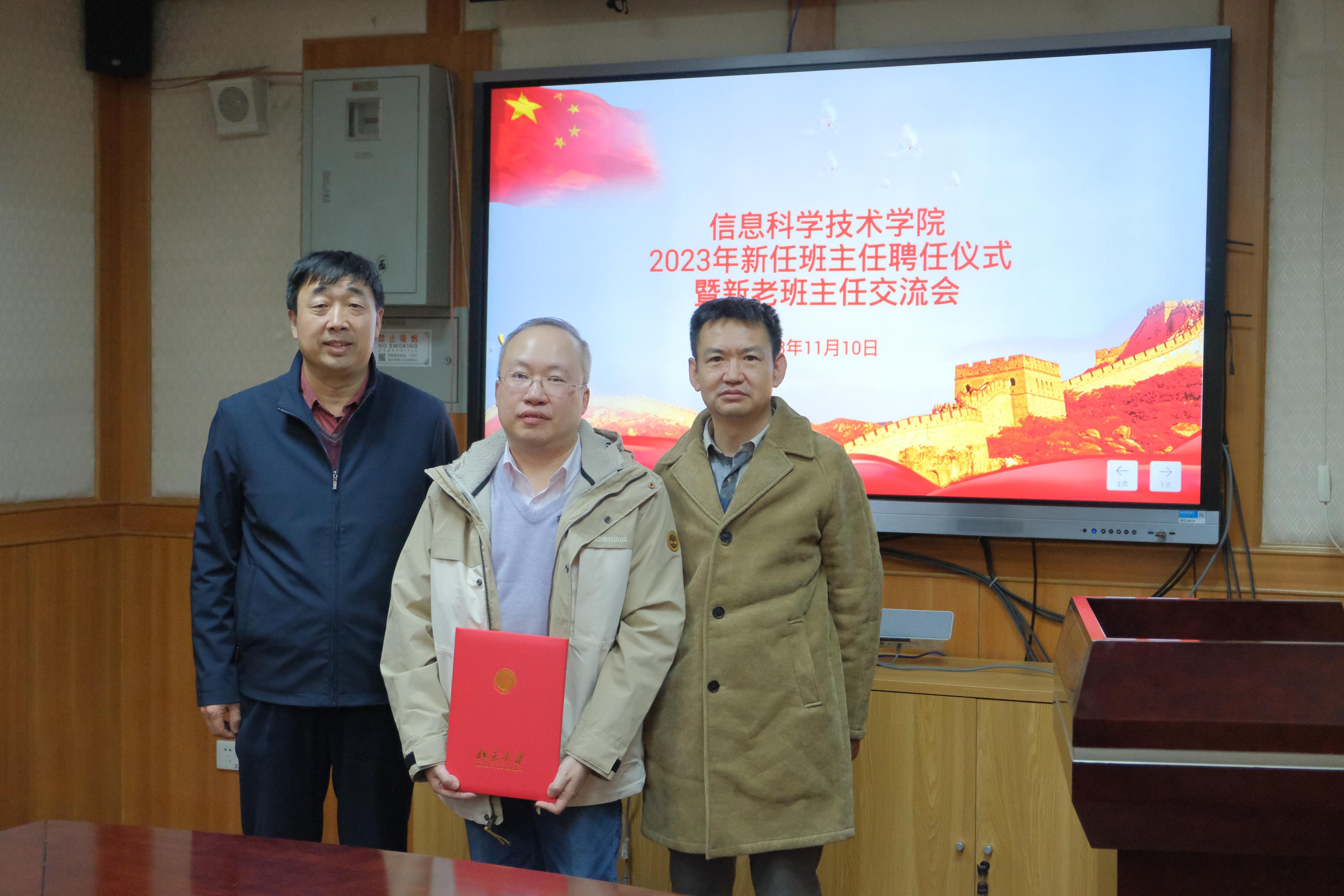 11月10日下午,信息科学技术学院在理科二号楼2111会议室举办2023年新任班主任聘任仪式暨新老班主任交流会,会上学院领导共同为2019级班主任代表颁发感谢状,并向2023级班主任颁发聘任书。学院党委书记严敏杰、院长侯士敏、副院长王润声、团委书记吕媛、学生工作办公室主任李子奇、2023年级辅导员刘天怡、学院2019级班主任代表、2023级班主任等参加会议。会议由学院党委副书记贾方健主持。
