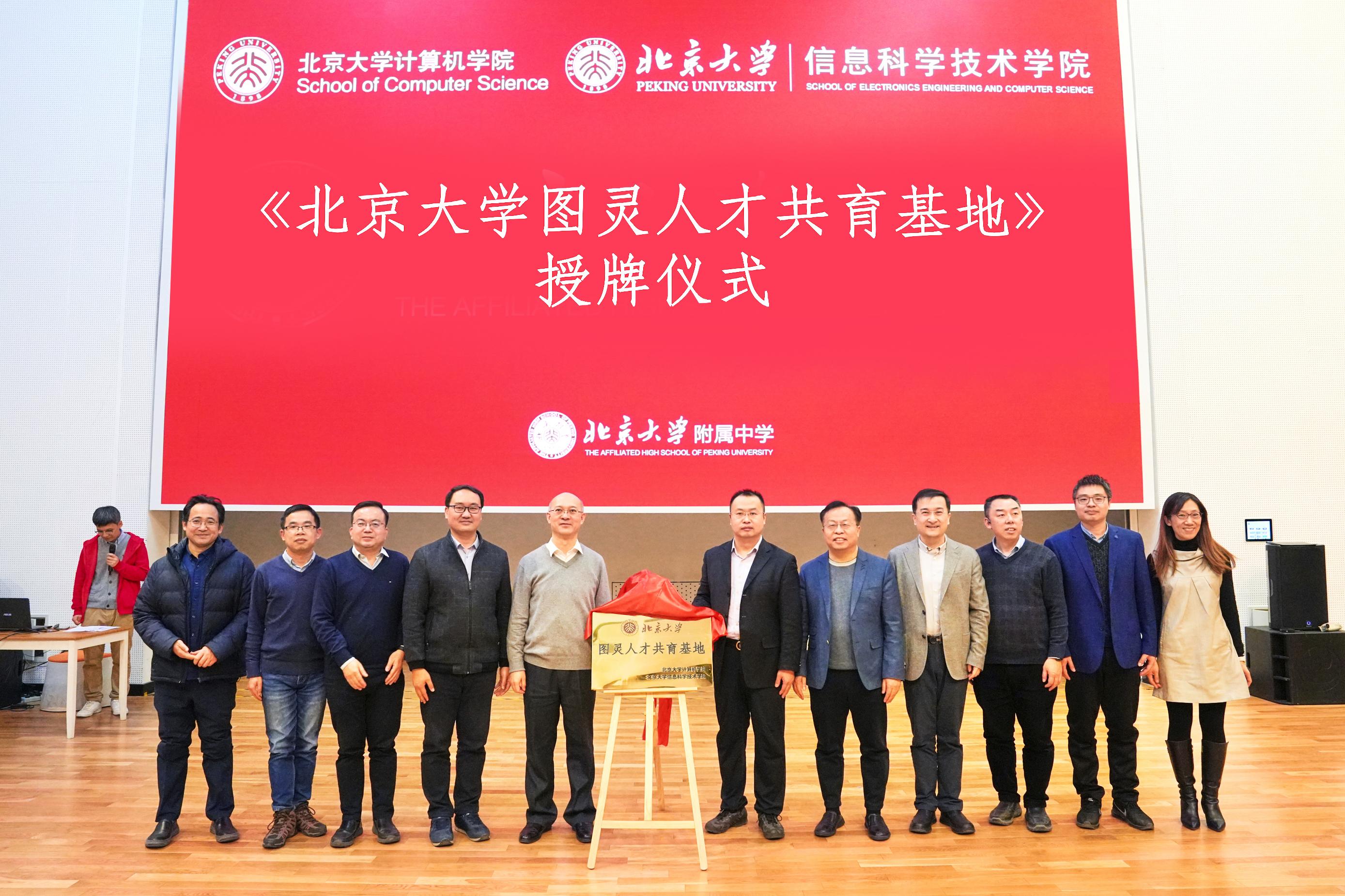 1月5日下午,“北京大学图灵人才共育基地”揭牌仪式在北京大学附属中学举行。北京大学副教务长、北大附中党委副书记、校长马玉国,北大附中副校长景志国、秦蕾、陈亮,北大附中元培学院院长李静、科学教育中心副主任陈清伟、信息与通用技术中心主任毛华均,北京大学计算机学院党委书记熊校良、副院长郭耀,计算机学院教授、多媒体信息处理全国重点实验室主任、北京智源人工智能研究院院长黄铁军,信息科学技术学院副院长陆俊林、院长助理张勤健,计算中心网络安全室主任周昌令,以及北大附中信息竞赛骨干教师及衔接班全体师生共同参加揭牌仪式。仪式由北大附中信息竞赛主教练肖然主持。