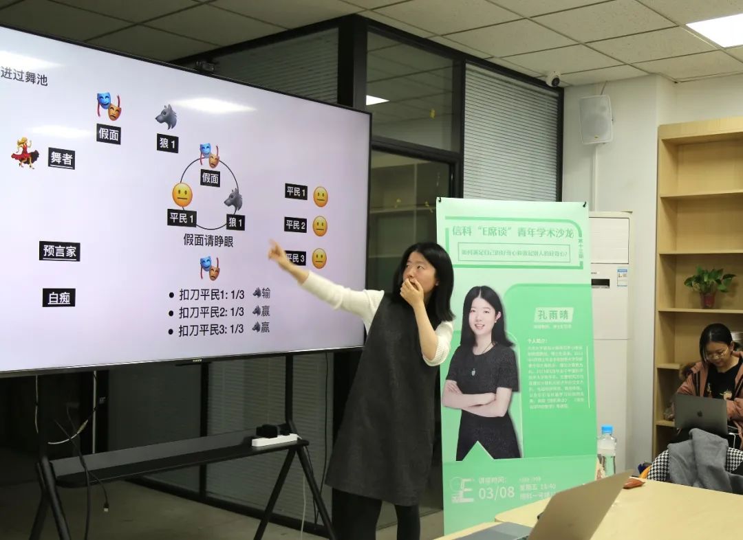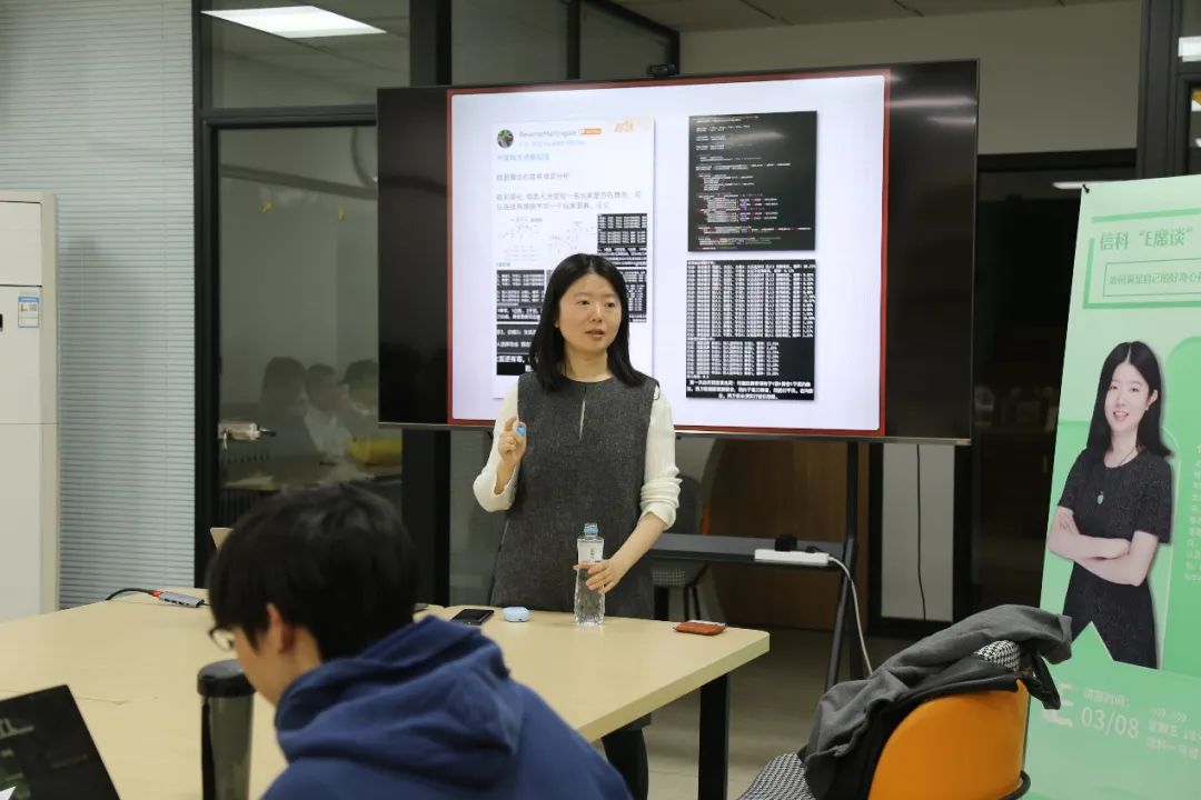 2024年3月8日晚,信科“E席谈”青年学术沙龙第十四期活动在理科一号楼1127学生活动室顺利举办。北京大学前沿计算研究中心助理教授,博士生导师孔雨晴,受邀进行了以“如何满足自己的好奇心和激起别人的好奇心”为主题的分享。本次沙龙由院青年志愿者协会毛川同学主持。学院团委书记吕媛老师参加了活动。