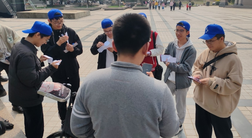 游戏结束后,大家聚集在百周年纪念讲堂门口,统计积分,分发奖品,讨论着游戏中的点点滴滴与自己独一无二的游戏策略,并合影留念。“春风满面笑芳菲,晴明日月欢明畅”,在同学们的积极参与下,本次“信历”联合团校定向越野活动取得圆满成功。