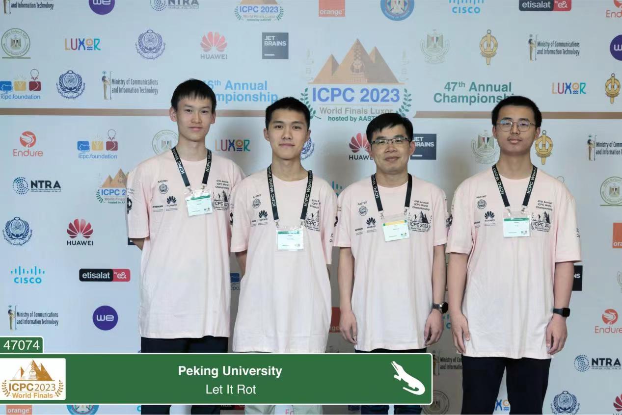 本次比赛,北大派出了两支具有强劲实力的代表队,由信息科学技术学院副院长陆俊林带队参赛。经过激烈角逐,信息科学技术学院21级本科生王展鹏、蒋凌宇和数学科学学院20级本科生罗煜翔获得46届ICPC WF冠军。信息科学技术学院22级本科生钱易、彭博、冯施源获得47届ICPC WF亚军。