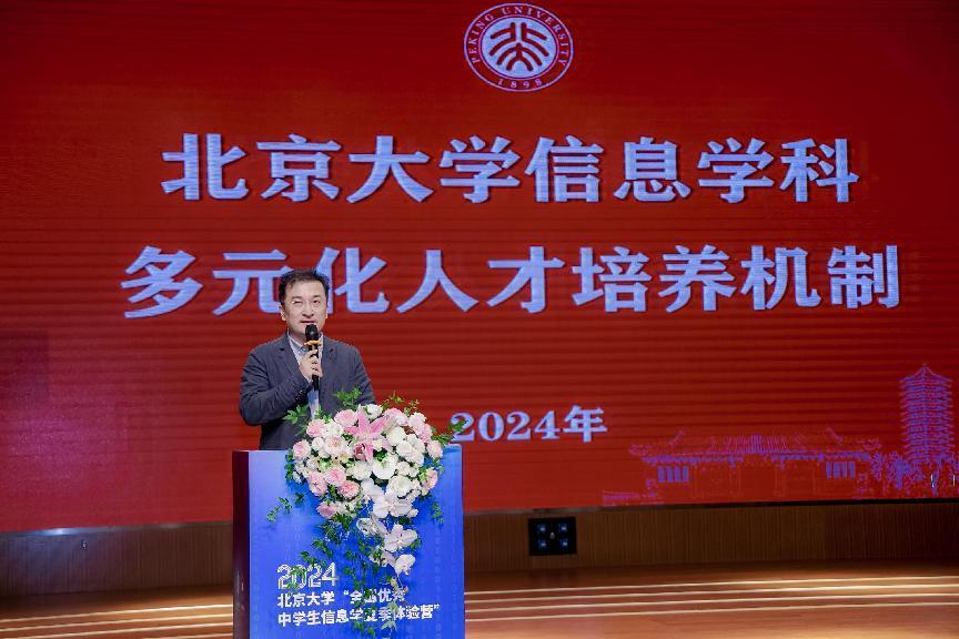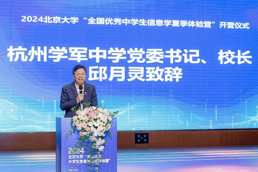 侯士敏感谢杭州学军中学教育集团文渊中学对本次活动的大力支持。他着重介绍了北大信息学科的发展历史和突出成果,特别是本科生在国际重要学科竞赛中屡获大奖的育人成效,以及学院改制以来强化本科生人才培养的理念和举措。他感谢全国各地优秀中学,特别是投身信息学的教练和学生对北大信息学科的认可和支持。他也鼓励参赛同学通过本次体验营聆听师长教诲、感受学术魅力,与志同道合的伙伴一起,探索信息科技的奥秘。