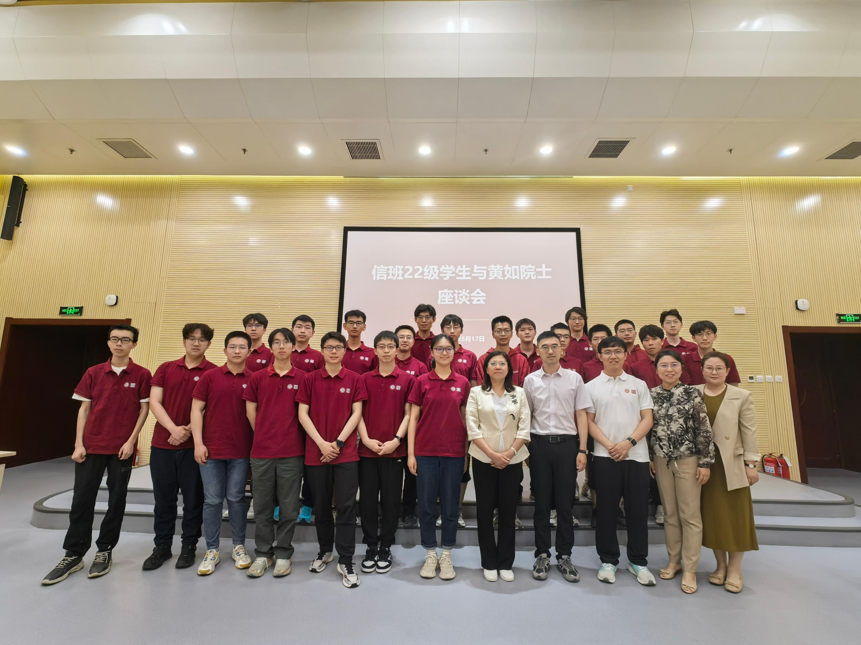 为持续推进信息学科拔尖创新人才培养,以“大师引领、名师指导”提升电子大类学生的学术科研能力,5月17日上午,中国科学院院士、东南大学校长黄如教授受邀与信息科学技术学院2022级电子信息科学类实验班(以下简称“信班”)的同学们进行座谈交流。信息科学技术学院副院长、集成电路学院教授王润声,22级“信班”班主任、人工智能研究院与集成电路学院双聘助理教授李萌及信班全体学生参加座谈会。会议由信息科学技术学院团委书记吕媛主持。