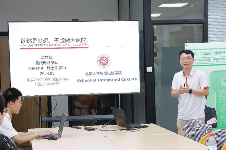 2024年5月10日晚,信科“E席谈”青年学术沙龙第二十一期活动在理科一号楼1127学生活动室顺利进行。北京大学集成电路学院助理教授、博士生导师沈林晓老师受邀进行了以“既然是梦想,干脆做大点的!”为主题的分享。本次沙龙由院学生科学技术协会袁一丹同学主持。学院团委副书记刘天怡老师参加了活动。