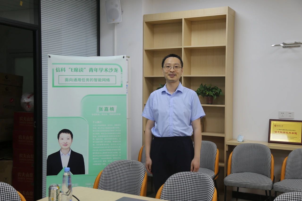 2024年5月17日晚,信科“E席谈”青年学术沙龙第二十二期活动在理科一号楼1127学生活动室顺利举办。北京大学电子学院助理教授、研究员张嘉楠老师受邀进行了以“面向通用任务的智能网络”为主题的分享。学院团委副书记刘天怡老师参加了本次活动。本次沙龙由院青年志愿者协会毛川同学主持。