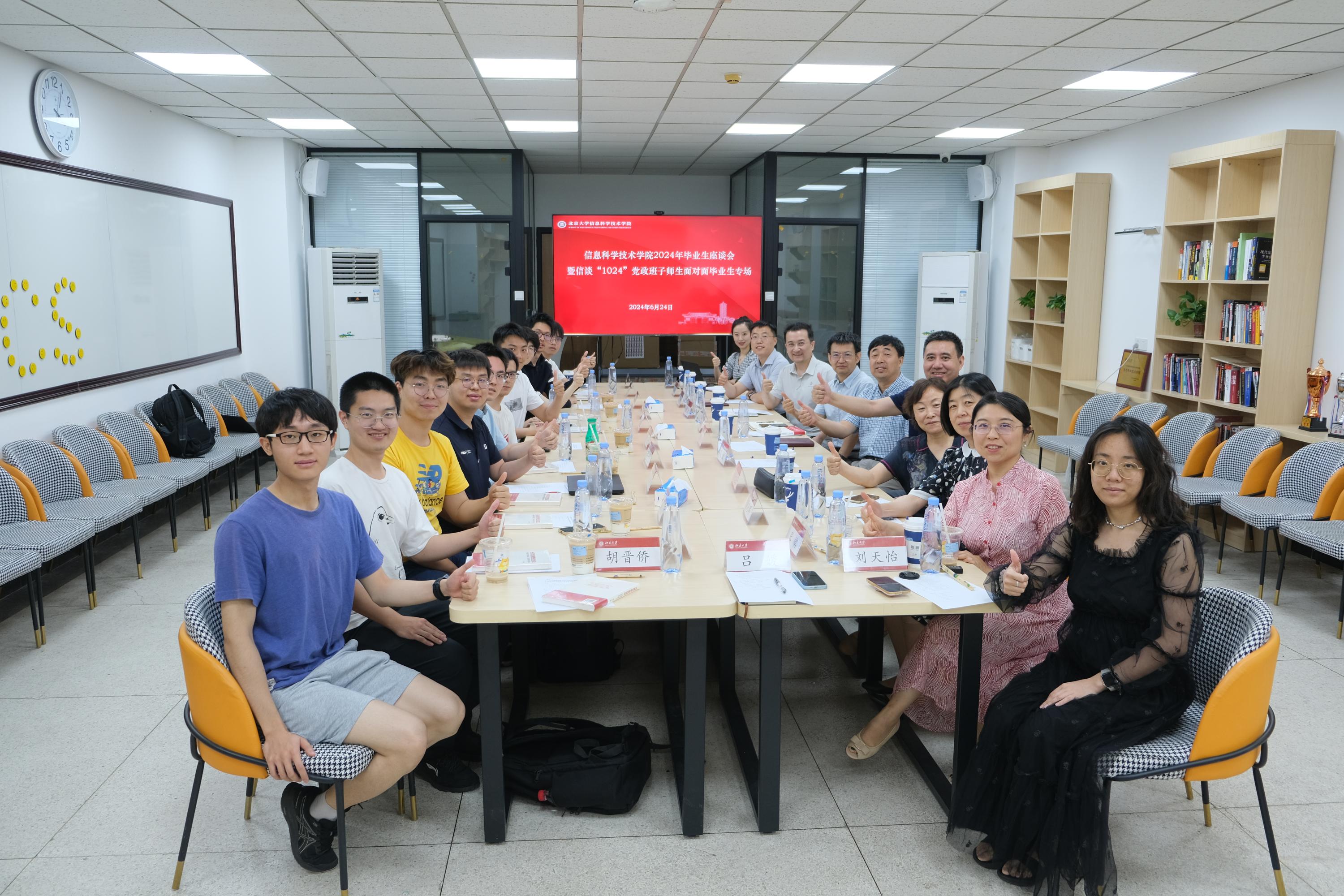 2024年6月24日下午,北京大学信息科学技术学院于理科一号楼1127会议室举办2024年毕业生座谈会暨“信谈1024”党政班子师生面对面毕业生专场活动。学院党委书记严敏杰,院长侯士敏,副院长陆俊林,副院长邓斌,党委副书记贾方健,学院离退休教师代表、关心下一代工作委员会委员刘志敏,教务办主任董晓晖,党政办副主任张铭,学工办主任李子奇,团委书记吕媛,团委副书记刘天怡等学院领导老师,与毕业生代表亲切交流。活动由学工办干部、2020级年级辅导员付晓倩主持。