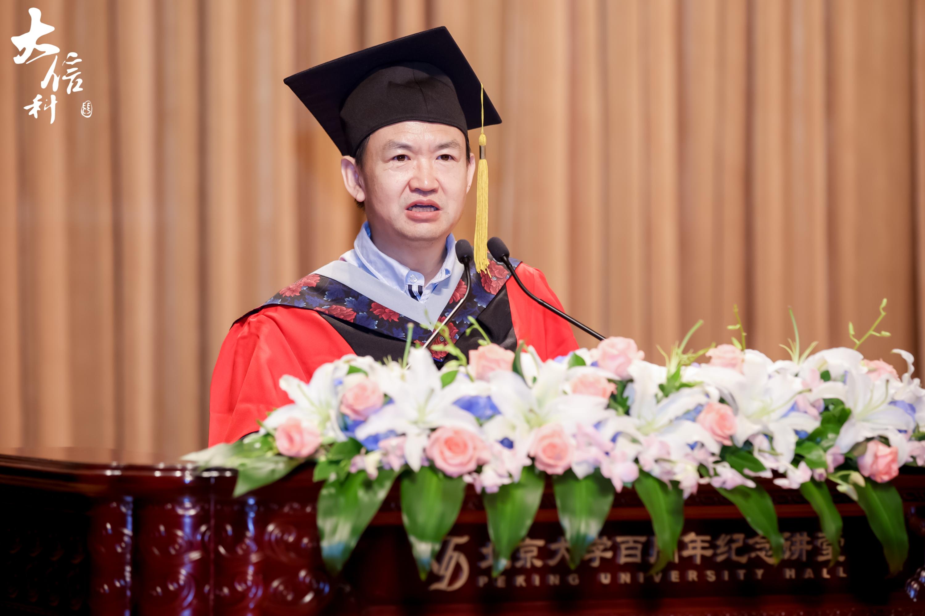 侯士敏院长首先向2024届毕业生致以衷心的祝贺。他引领大家回顾了燕园四年中重要而难忘的青春回忆,称赞大家的专业、热情和奋勇担当。他讲到,国家的建设与发展需要青年的努力与奋斗,建设科技强国、实现高水平科技自立自强更是“大信科”青年人的使命担当。对于即将面对的未来新挑战,侯士敏院长提出三点期望:一是希望大家大道如砥、初心不怠;二是希望大家迎难而上、开拓进取;三是希望大家关注内心、幸福充实。最后,他祝愿同学们一帆风顺、前程似锦,开启新的人生篇章。