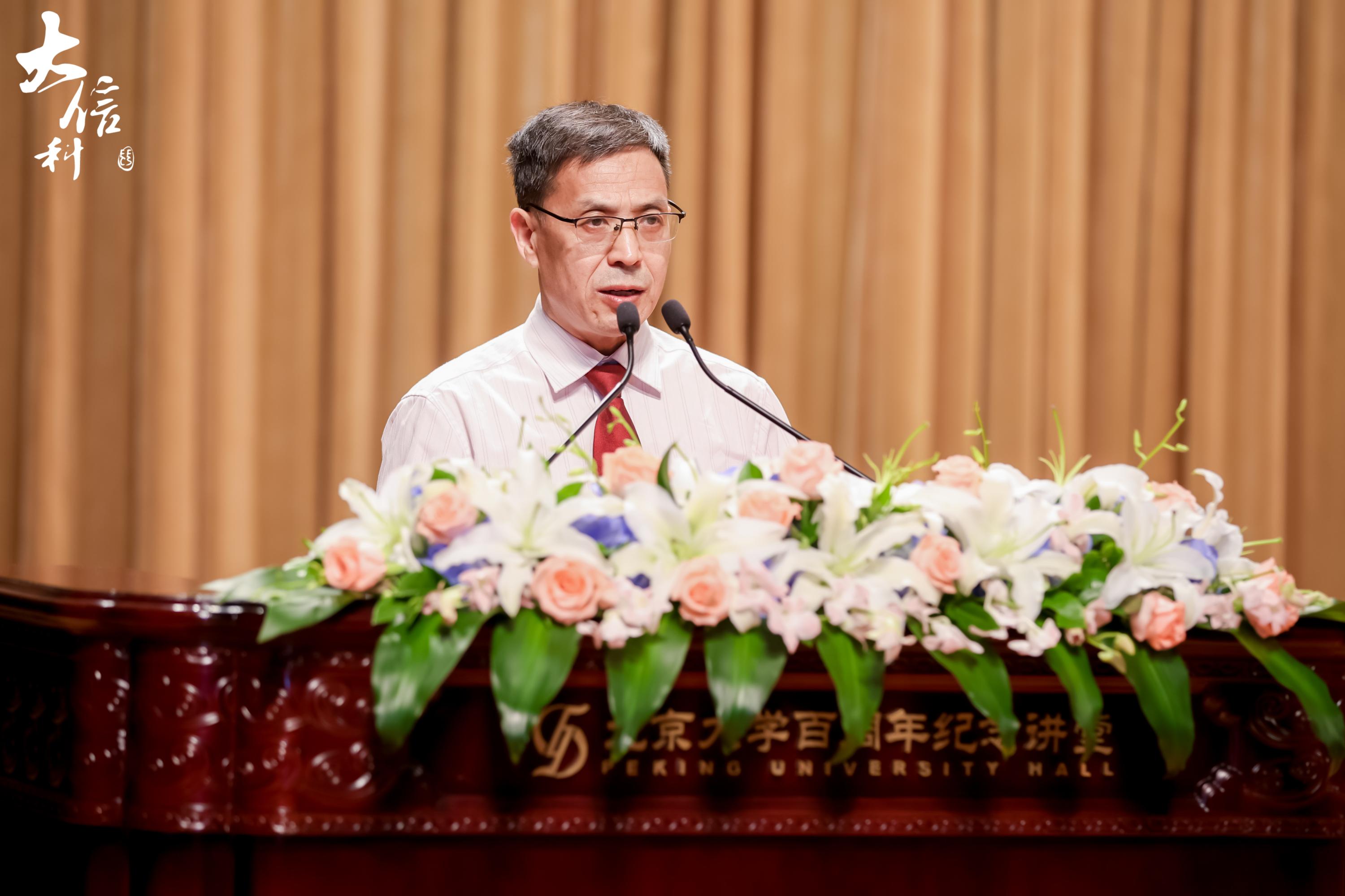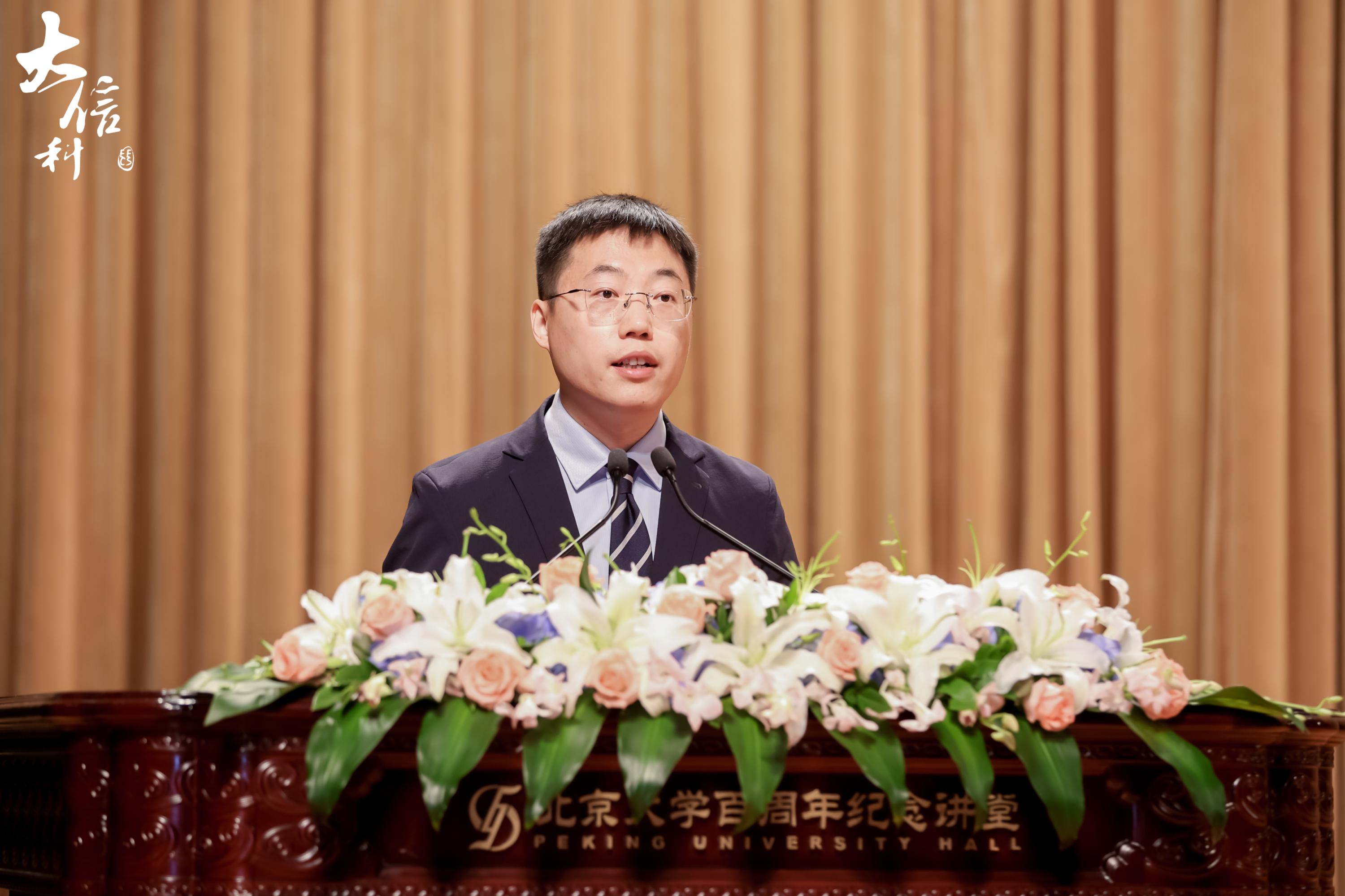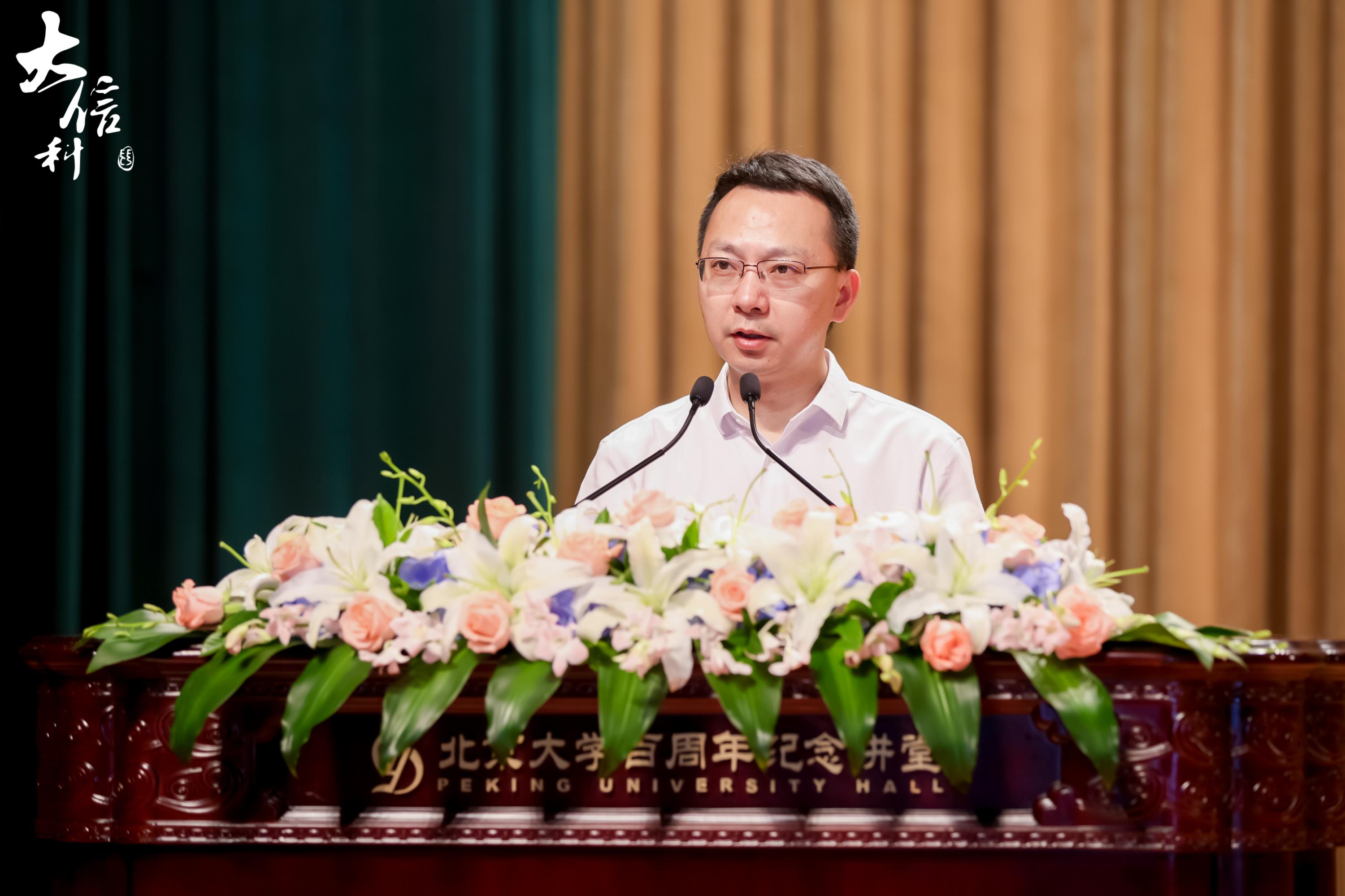 家长代表,陈天朗同学的父亲陈俊勇先生同大家分享自己对于北大信科的学习与生活的一些感触。北大的文化底蕴深厚,学术科研水平卓越,校园文化和社团活动丰富多彩,为同学们提供了广阔的发展空间。信息科学技术学院不仅为同学们提供了世界一流的师资力量,还开展了如学生学术科创季、信科“E席谈”学术沙龙、创新+工作站等富有成效的培养活动。希望同学们乘着时代的东风,续写北大信科人的辉煌。谱写民族复兴的新乐章。