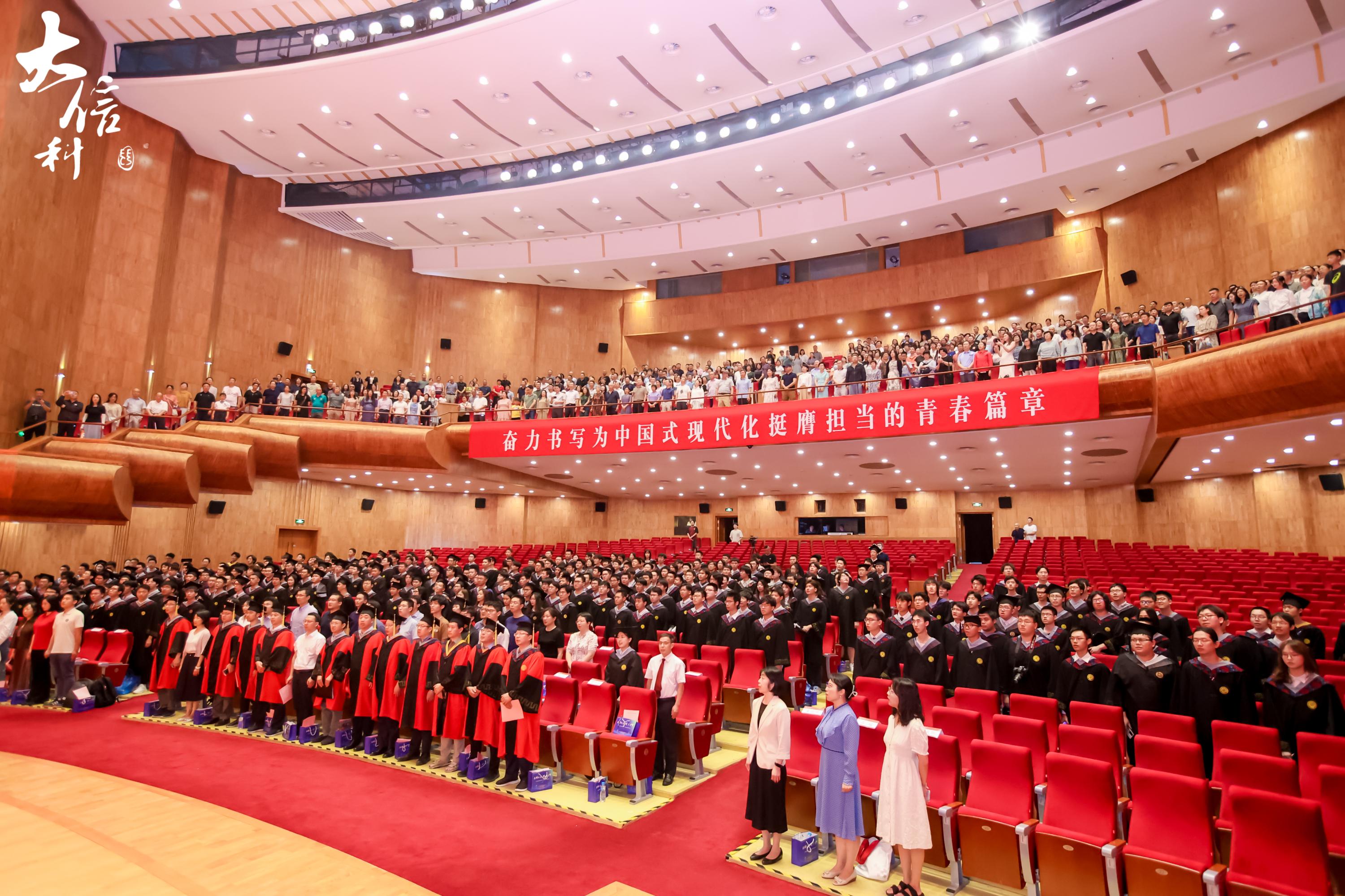 毕业典礼在雄壮的国歌声中正式开始。