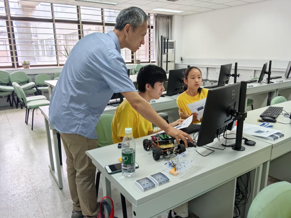 77日的活动同样精彩纷呈。上午,姿态控制蓝牙遥控小车电子学动手实验课程,激发了营员们的创新思维和实践能力。信息科学技术学院杨延军老师、电子学院吕国成老师、集成电路学院叶红飞老师带领营员们在动手操作的过程中感受科技的神奇。