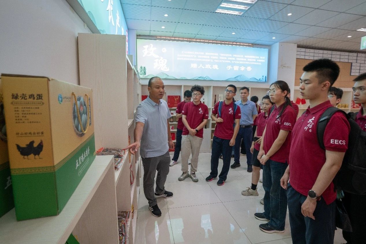 随后,实践团前往弥渡县电子商务公共服务中心,了解当地特色农产品及其产销情况。工作人员依次为大家讲解了古树红茶、玫瑰酱、紫皮独蒜等弥渡特色农产品及其包装开发工作,介绍了当地“一个中心,两个网络,三个体系”的电商发展框架和电商行业校企合作情况,并带领大家参观了产品线上推销直播间。师生关于产品销路、产销合作模式等话题展开热烈讨论。目前,电商中心已推出“弥渡优选”向全国销售特色农产品,但仍需继续加大宣传推广力度,尤其是借助互联网电商潮流,不断提升弥渡特色农产品知名度,从而为弥渡农产品产销发展注入持续动力。