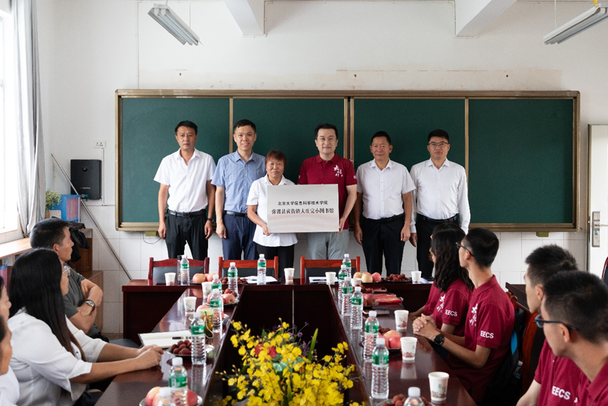 7月11日上午,实践团乘车来到寅街镇大庄完小,举行大庄完小图书馆启用仪式。弥渡县政府副县长张魁元和北京大学信息科学技术学院副院长陆俊林老师分别致辞,介绍了北京大学信息科学技术学院与云南弥渡县之间的十余年帮扶情谊,表达了对教育扶贫工作的重视和对图书馆未来作用的期望。这批书籍不仅承载着知识的重量,更承载着北大人对弥渡县孩子们的关爱和期许。